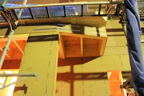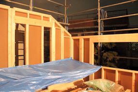 軒天の部材も搬入されて、取付が始まっていました。 右したの四角いのは、部分拡張です。 |