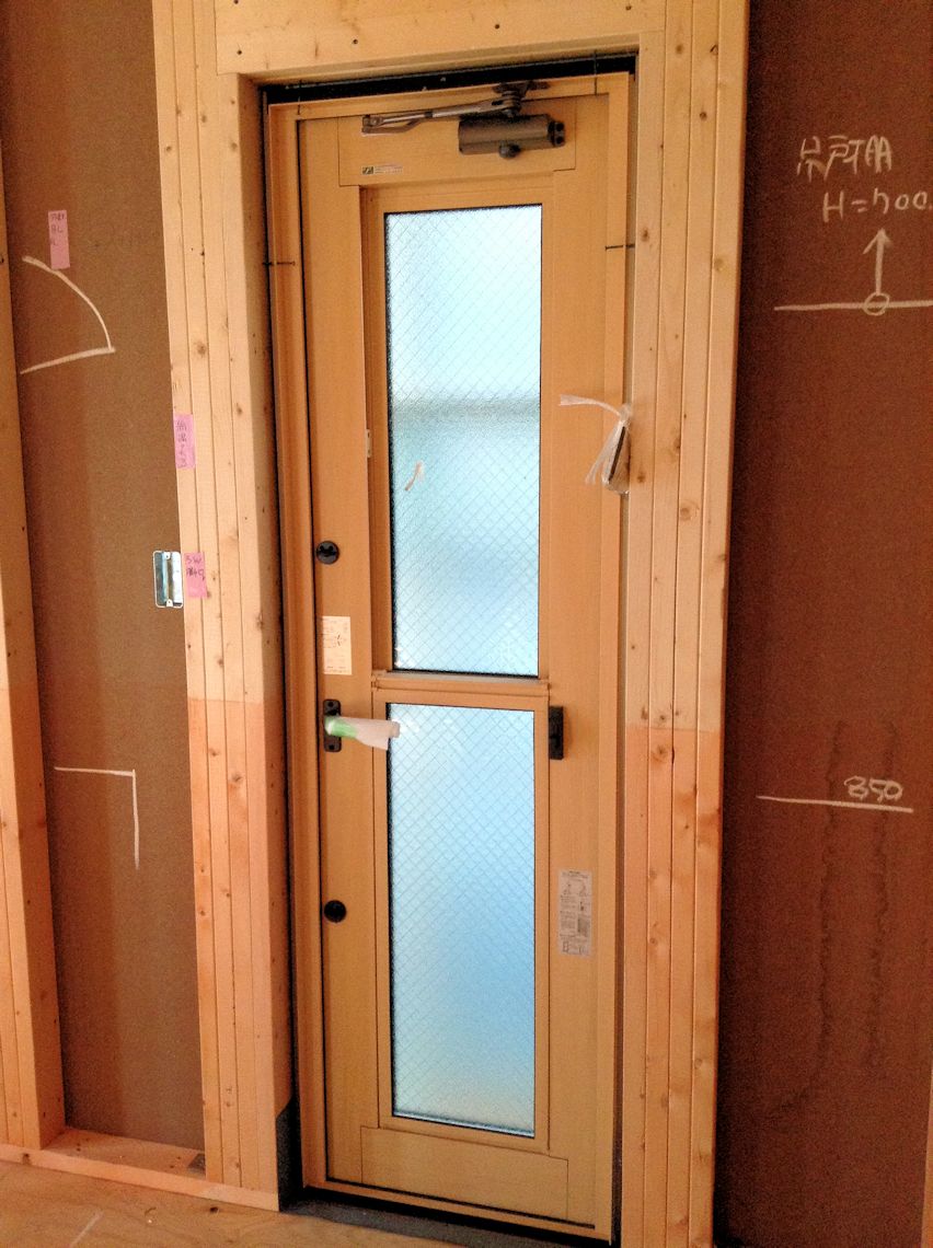 2階のトイレです。 扉の開く方向、スイッチの位置なども確認します。 |