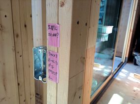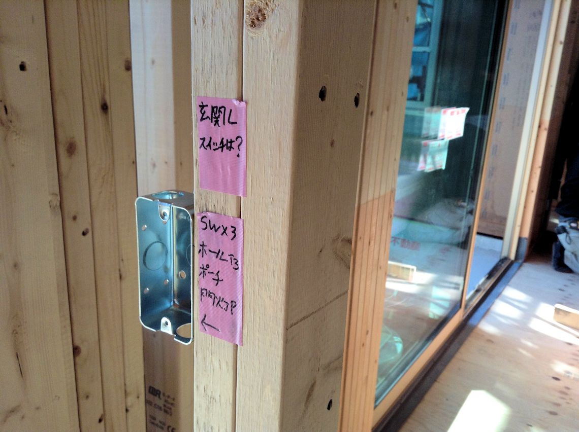 | 西側の壁の窓の右下にPHV用のコンセントを つけました。左下は外構用のコンセントです。 |