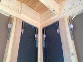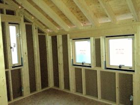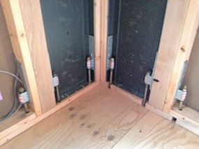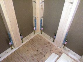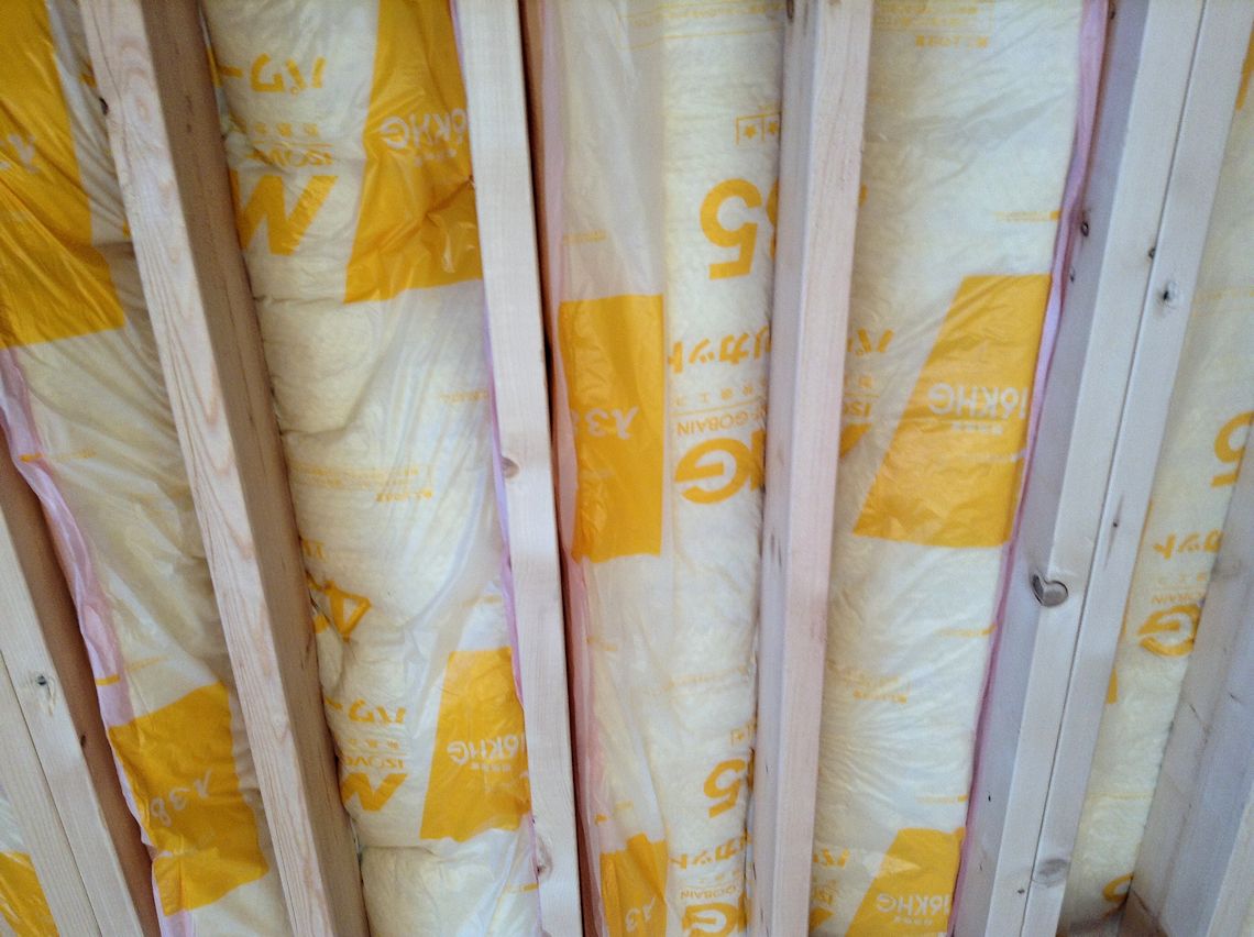 | 断熱材が施工されました。四隅の Power Culumnの 部分だけ違うものが使用されていました。 |
