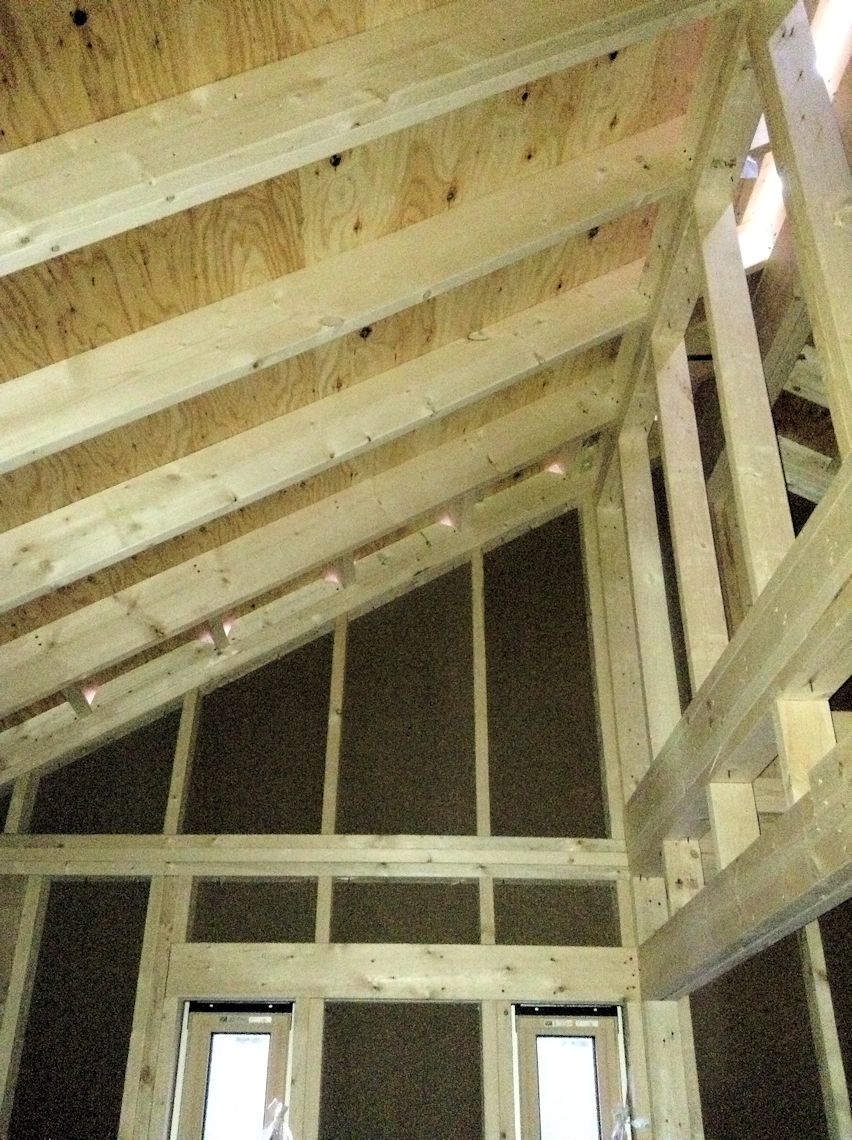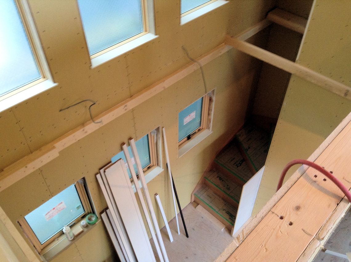 1階リビング上の足場が撤去されて、吹き抜けの感じ がでてきました。(狭いけど・・・) |