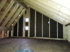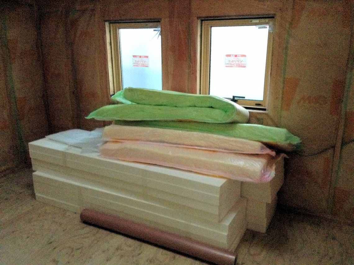 2階の部屋の傾斜天井に使用する断熱材が搬入され ていました。 |