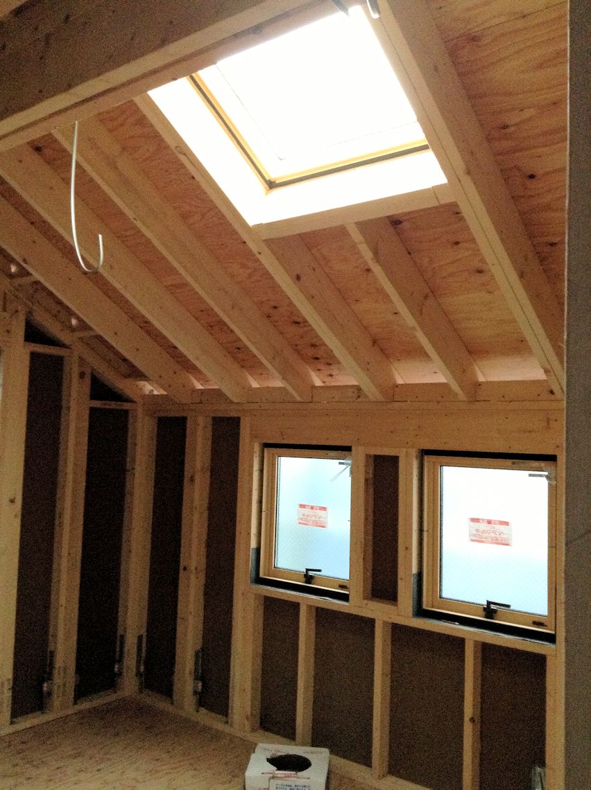 | 2階の北側の部屋です。天窓がつきました。 明るくなって、屋根の低さもカバーしてくれます。 |