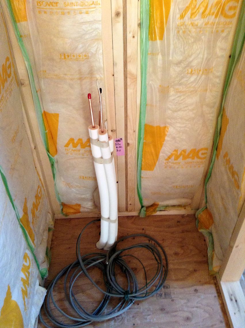 | 2階の空調機械室です。室外機への配管が 施工されていました。 |