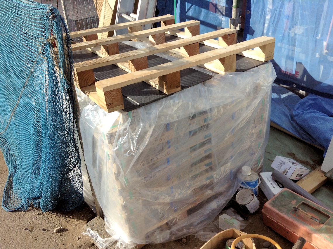 屋根材も搬入されていました。 コロニアル遮熱グラッサです。 |