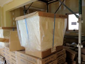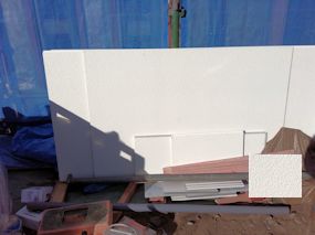 | 外壁材が搬入されていました。 EF484 パルムクリアホワイトです。 |