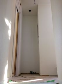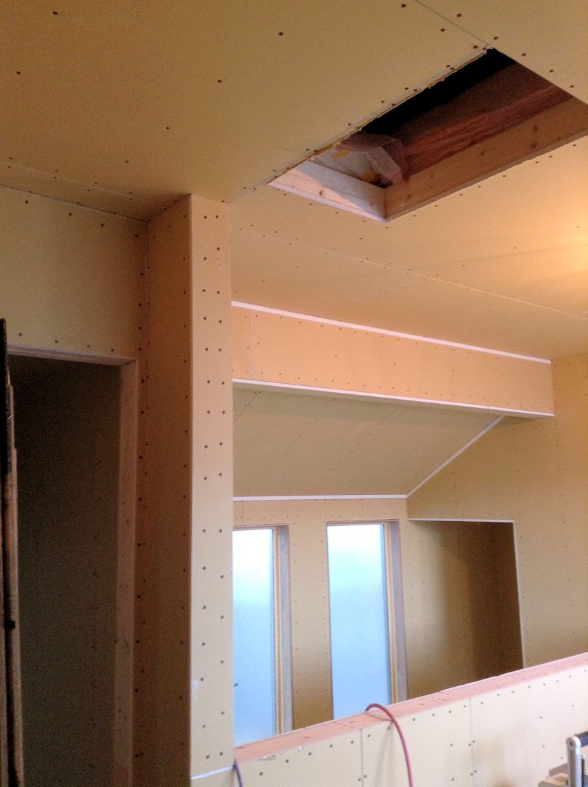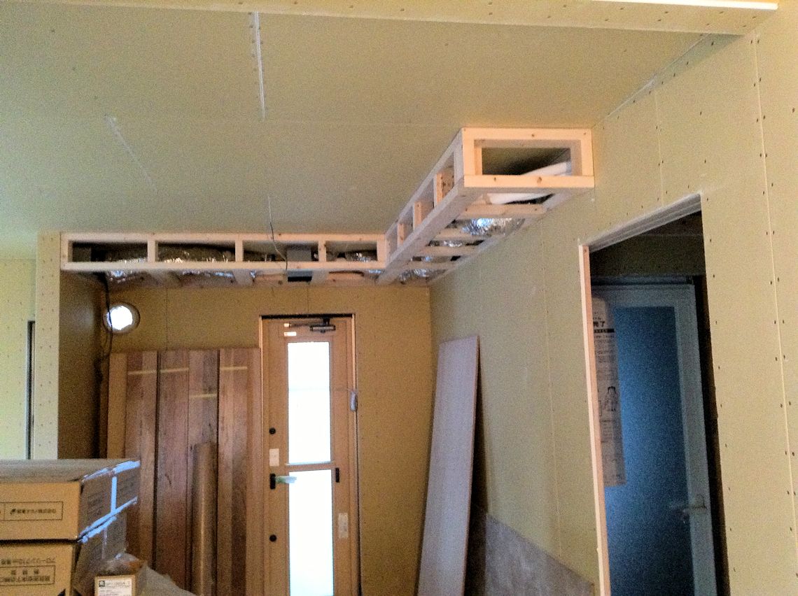 全館空調用の下がり天井もボードが貼られました。 ちょっと心配していましたが、気になりませんね。 |