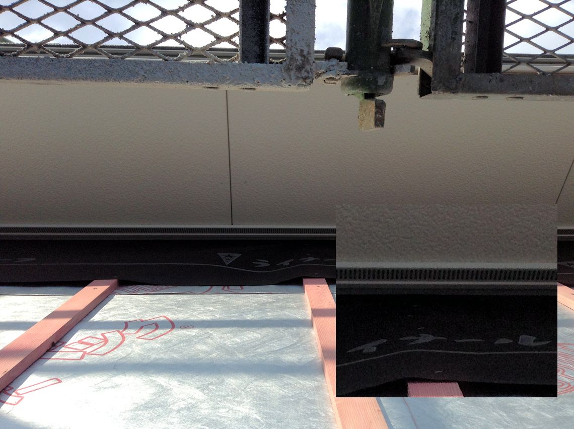 | 軒天の部分です。左下は部分拡張写真です。 屋根下の通気口が見えます。 |