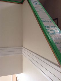 吹き抜け部分は壁紙の繋ぎ目となる部分に回り縁 が取り付けられています。 |