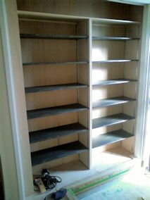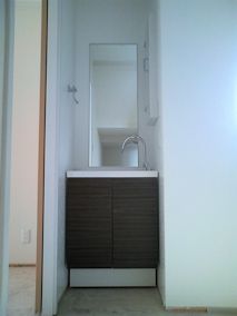 | 2階の洗面台が入りました。 | 下駄箱の可動棚がはいりました。 | リビングの物入れにも可動棚がつきました。 |