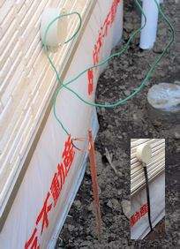 タイベックシルバーの表面に木材が打ち付けされて いました。 |