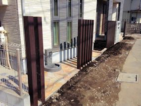 西側から見た図です。茶色い柱はアルミ製です。 |